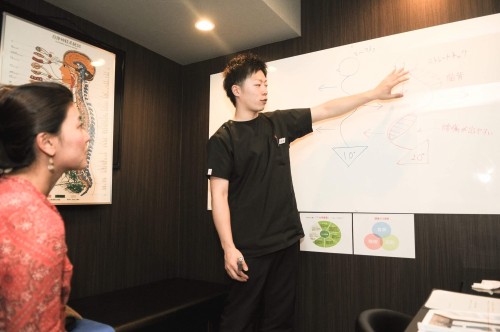 弱めの手技を行い、ハイボルテージと鍼灸中心の弱刺激での治療を行っていきました。