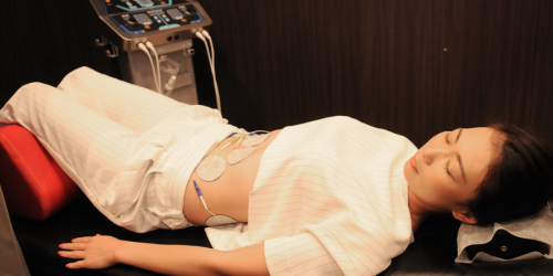 複合高周波EMSでインナーマッスルを刺激するトレーニングです。